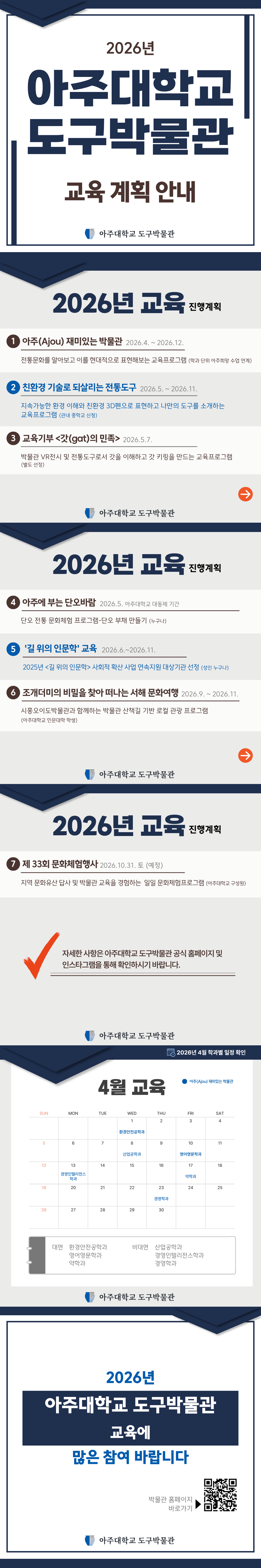 2026년도 아주대학교 도구박물관의 교육 운영 계획을 안내 드립니다.